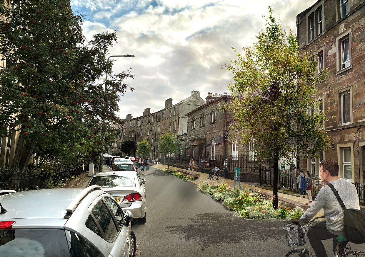 “Working closely with the local community, these early designs present a comprehensive and ambitious vision of a place where people are able to walk, wheel and cycle with ease. Safer routes to school and better connections with public transport will create a more inviting space for everyone and restore peace and enjoyment to an area sorely overburdened with car dominance from through traffic. We encourage everyone living and working in the Dalry area to engage closely with these exciting proposals and help make this project a success.”