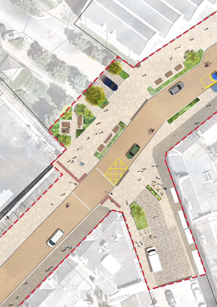 Plans to make the town centre a more attractive place have been designed to make it easier to access local shops, schools and services with wider pavements and better cycling provision. Ideas include features to create better spaces to spend time, with trees and nature, planting, public art, and opportunities to rest.